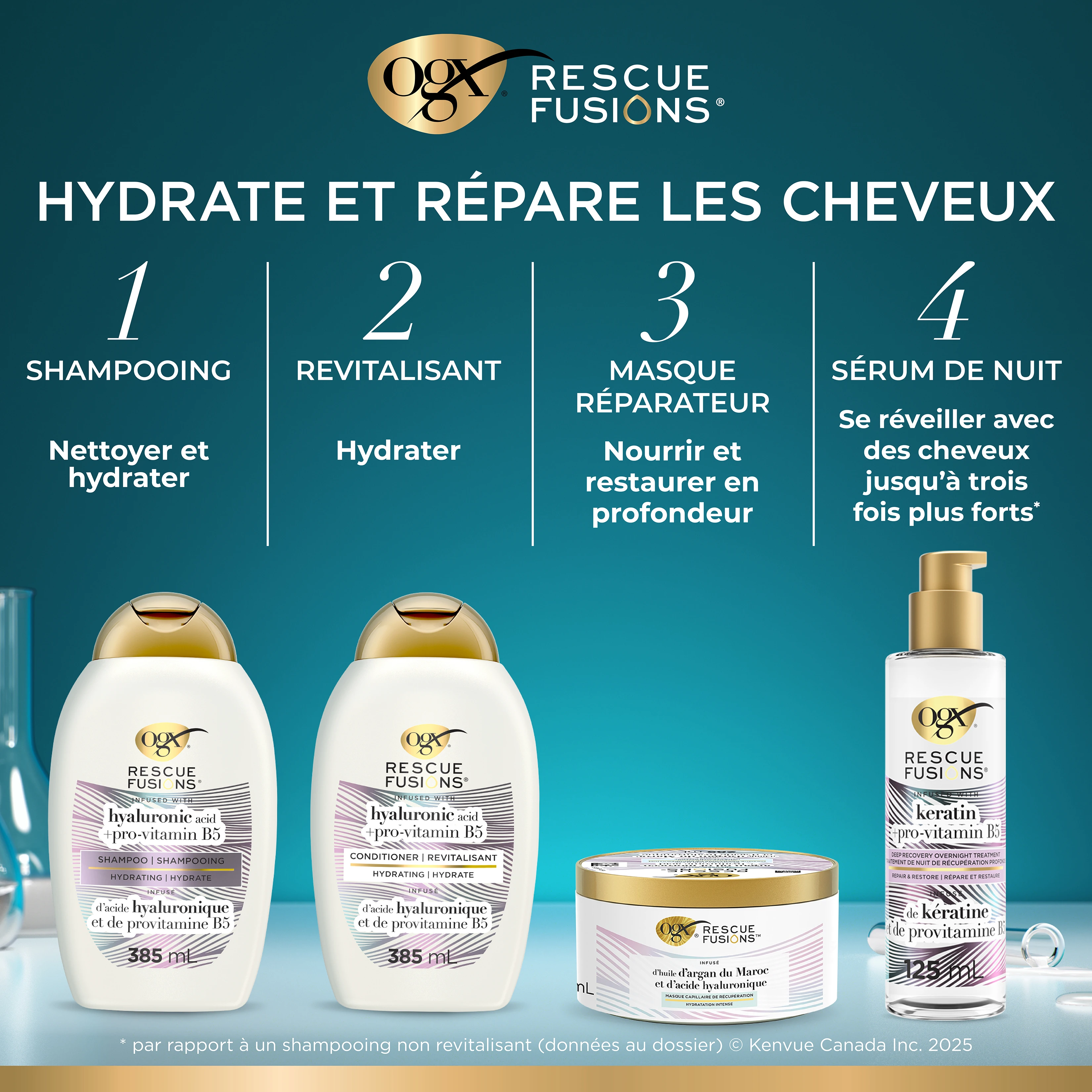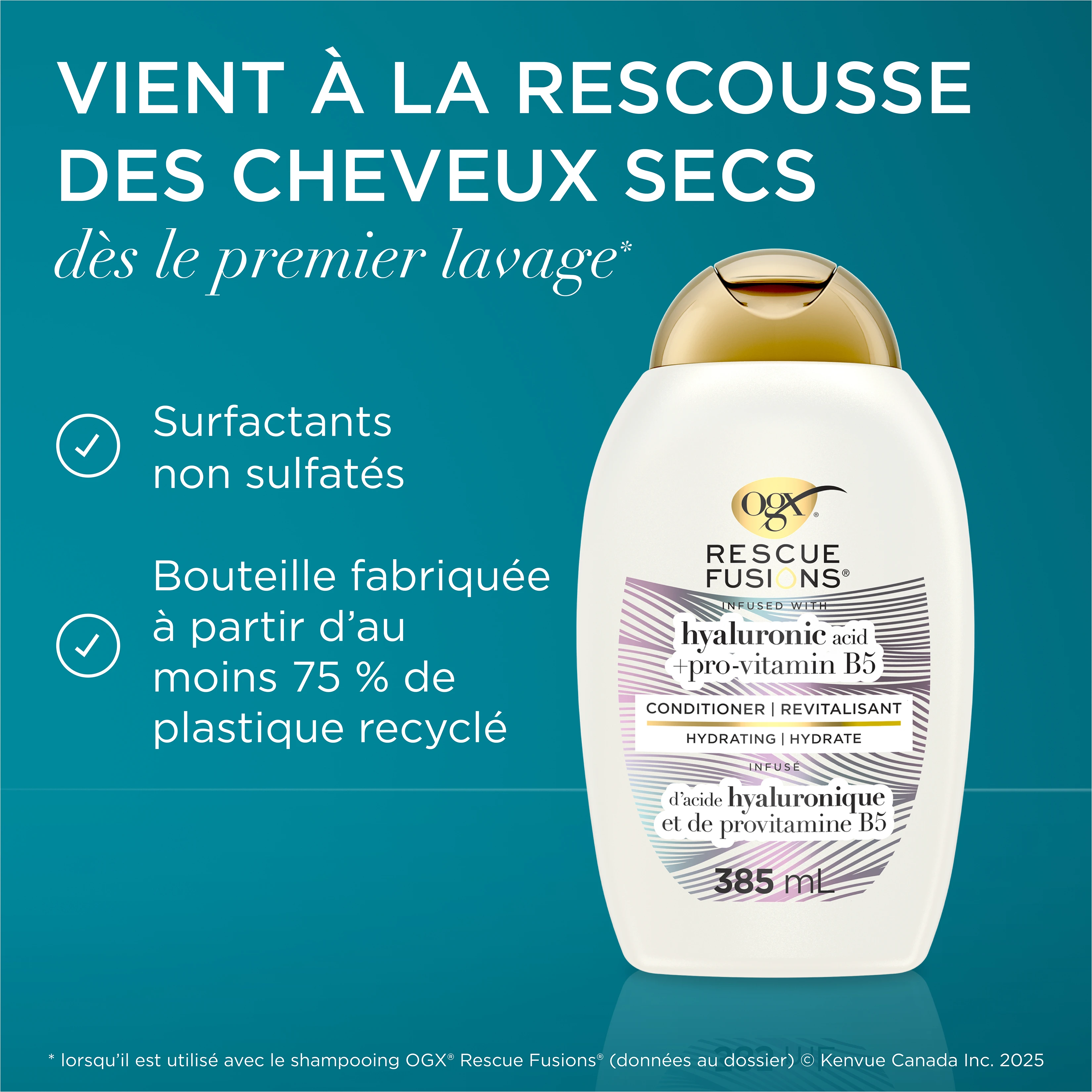 Après le shampooing, appliquer généreusement le revitalisant sur les cheveux, en allant jusqu'aux pointes. Attendre de 3 à 5 minutes. Rincer à fond.
